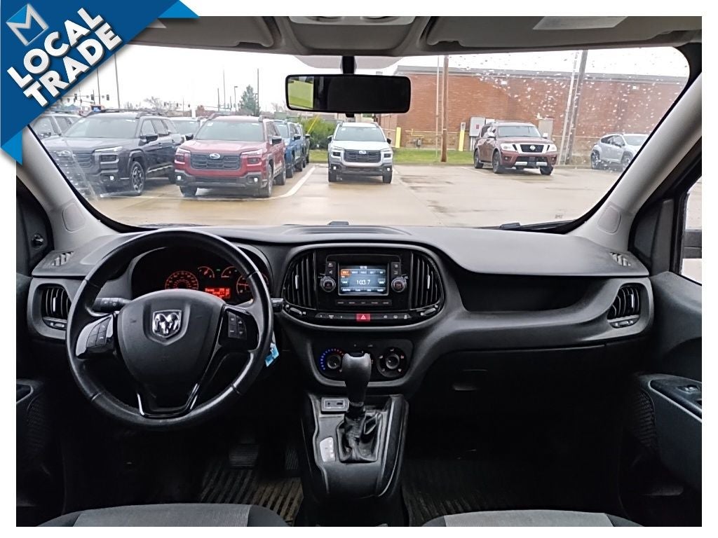 Inside the cabin, Ram designed this van with real-world functionality in mind. You'll enjoy **bucket cloth seats, adjustable steering wheel, driver lumbar support, and a convenient 5-inch touchscreen display**. Bluetooth® connectivity, streaming audio, and steering wheel audio controls make it easy to stay connected while you're on the move. With **multiple 12V power outlets, clever interior storage, and a locking glove box**, your tools, paperwork, and coffee all have a place.