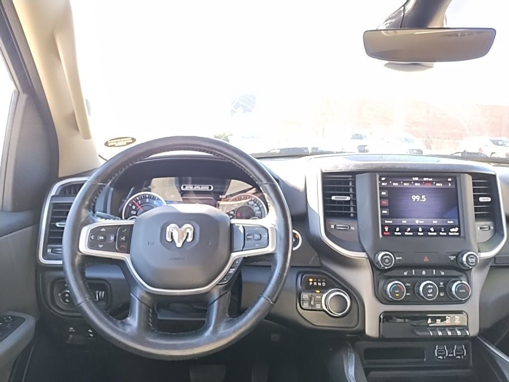 Inside the spacious Crew Cab, you'll find comfort that lives up to the Big in Big Horn. Premium cloth bucket seats, power driver seat with adjustable lumbar, heated front seats, heated steering wheel, dual-zone climate control, leather-wrapped steering wheel, and adjustable pedals make this truck road-trip ready. There's room for the whole crew and then some.