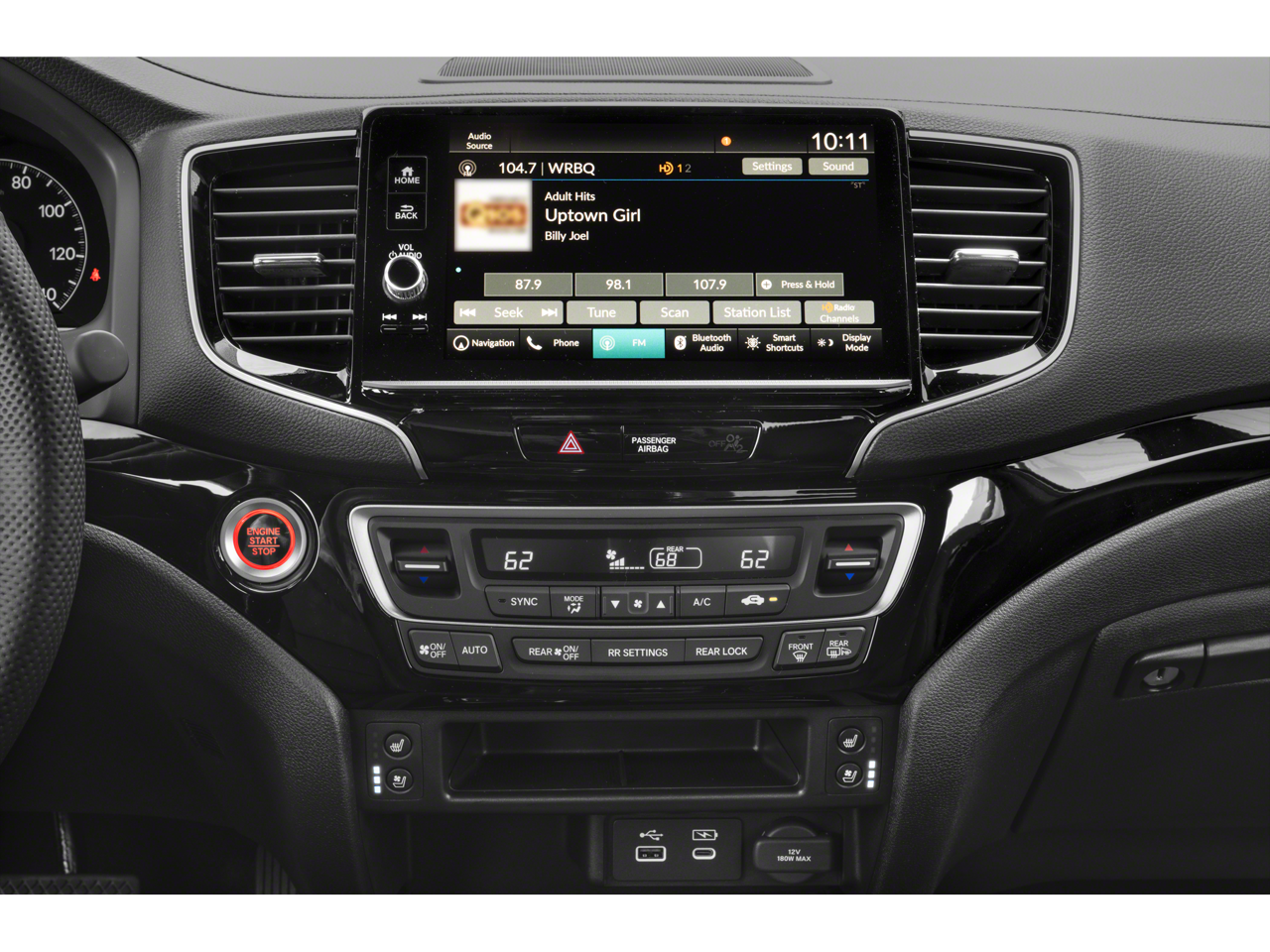 - Radio: 540-Watt Premium Audio System w/8 Speakers -inc: subwoofer, 9" color touchscreen, Bluetooth® streaming audio, Speed-Sensitive Volume Compensation (SVC), wireless Apple CarPlay/Android Auto compatibility, HD Radio, 2.5A USB-A data port in front console, 3.0A USB-C charging port in front console and HondaLink